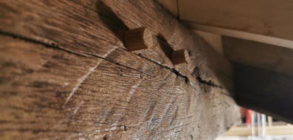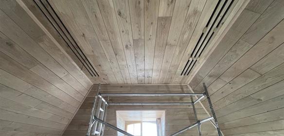 We're currently preparing and installing a hand picked selection of reclaimed oak beams into the ceilings of a brick & flint barn conversion in the Candover Valley. Each chosen beam has its own individual character with assorted marks, scars and curves, all of which give the desired authentic finish.
