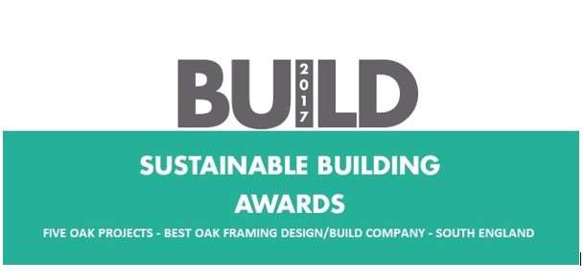 A pat on the back...Five Oak Projects named as winners in the Build 2017 Sustainable Building Awards as; Best Oak Framing Design/Build company - South England. With the BUILD awards programme in its 2nd consecutive year, this prestigious award highlights us as one of the most outstanding performers in our field.