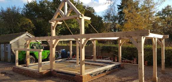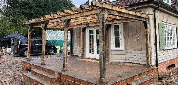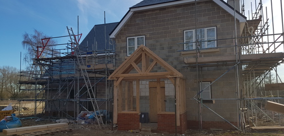Fitting a lovely new air-dried oak framed porch to this new build in Woolhampton to create a smart and welcoming entrance for all visitors to come (once the build is completed!).