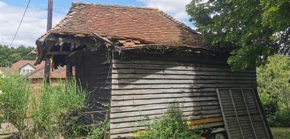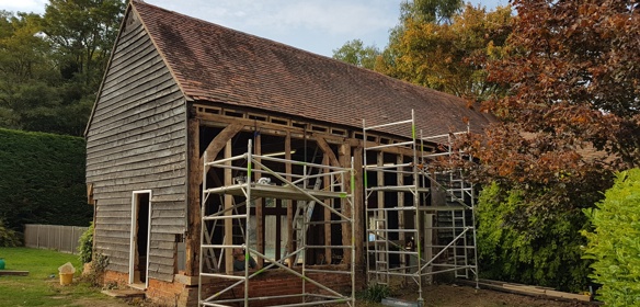 Another listed barn in need of some Five Oaks TLC! Our brief on this project is to make essential frame repairs only to prevent any further degradation of the building structure itself. Once this old cart shed is safe and sound, our clients can take their time to decide their long-term plans.