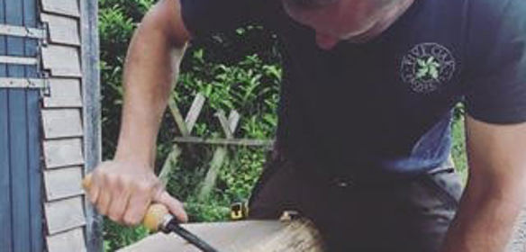 Here's the team taking full advantage of a (relatively) warm and sunny day to work outside the workshop back at the farm, hand crafting an oak frame and curved arches for a garage extension for our clients in Crondall.