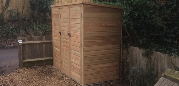 This custom built bike/bin shed is made with Siberian larch cladding - which is particularly weather resistant. With padlockable latches, it is large enough to house the ugly wheelie bins we all have nowadays, plus provide secure storage for a couple of road or mountain bikes.