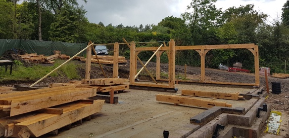 This is a very exciting restoration build project we're working on; to reconstruct a 5 bay traditional cart shed to replace the fully collapsed original building. Working closely with the planning office to meet all the required conditions, we are just starting to install some of the original timbers, salvaged from the site, into the new frame. As the build progresses, more salvaged materials will be installed so that we create a faithful replica of the original shed.