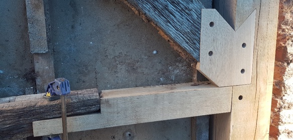 Close up detail of a fabulous restoration job we're doing. We've removed the worst of the badly rotten timbers and scarfed in new green oak posts to ensure this building is safe and secure, ready to face the next 100 years. We will finish the job and make good by reinstating the brickwork, matched to the original as much as possible of course!