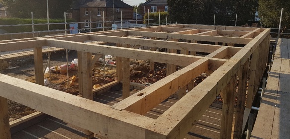 That's all the ground floor timbers in for this new development in Surrey, where we're building a six bay barn with accommodation over. With the main frame up, it's time to move onto the upper level.