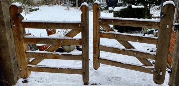 Knocked up in the (relative) warmth of the workshop by the very talented Toby, these custom built oak gates were made to match the client's design and then installed during the cold and snowy weather we experienced this month.
