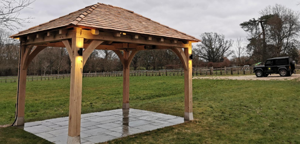 Getting ready for warm spring and summer days (and evenings), we've just finished this gazebo for our clients in Hartley Wintney. With heaters and lighting also installed, it is ready to go as soon as the weather picks up - or even if it doesn't!