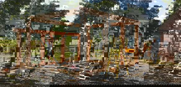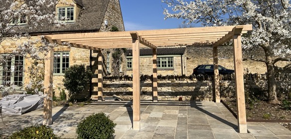 Built offsite in the workshop and installed onsite in just one day, this Cotswold property is now enhanced by this stunning pergola. Situated on an extensive patio, it has been designed to house an outdoor kitchen to complete the outside entertainment space.