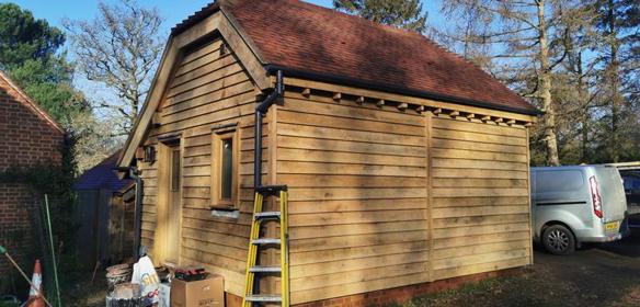 It's always a pleasure to visit former clients and, in this instance, see the guest annexe we built for them 18 months ago. The oak is weathering slowly to its ultimate silvery-grey finish and it looks lovely in the autumn sunshine and surrounded by lush garden planting. We understand it has been a valuable and much-used addition to their property, so we are as delighted as they are!