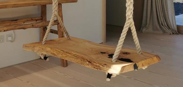 This wonderfully gnarly piece of oak has been lovingly treated to create this unique indoor swing. We used black epoxy resin to fill the knots and holes to really bring out the features of the wood and sanded it so that it is a smooth as silk to sit on, but retains the wavy edges for a more rustic and natural look.