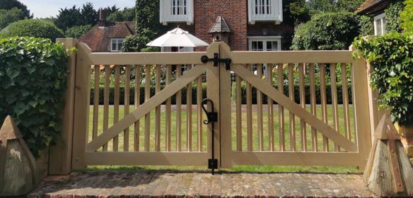Not all our jobs are big builds, sometime we focus on smaller jobs that are none-the-less important for creating the desired look and feel our clients seek. Here, we have re-created a pair of bespoke oak gates to replace the rotted originals, and installed with fully restored ironmongery.