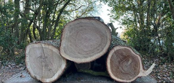 Underneath this fallen tree was a beautiful Grade II listed 3 bay cart shed. Our job has been to salvage any materials we possibly can to use in the recreation of this lovely building, and work with the Conservation Team to get planning approved to start the re-build.