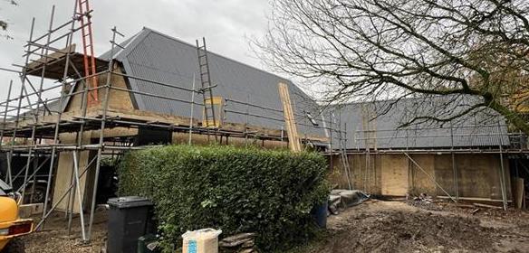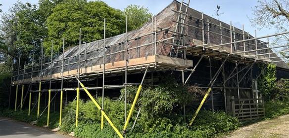 With all the required supporting and access scaffolding in place (there's loads more inside!), works starts carefully stripping back this listed barn. It will undergo a full program of comprehensive repair, restoration and conversion over the coming months.