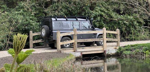A small and rotten foot bridge has been given a fairly major upgrade here to a new, custom built hand made oak vehicle bridge. The boys didn't entirely manage to avoid the recent floods (!), but it looks gorgeous in the low January sun and Oli took the opportunity to try it out (and show off his pride & joy at the same time).