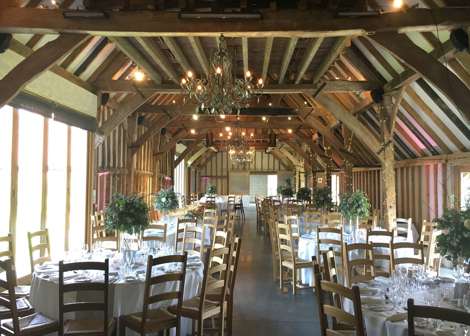 This is the Threshing Barn at www.southendbarns.co.uk, a major restoration project of a beautiful old building. Aiming to keep as much of the original timber frame as possible, it features a complex web of oak posts and beams where new meets old. Reflected in the highly polished concrete floor, the vaulted ceilings and restored oak frame creates a stunning location for a wedding breakfast.