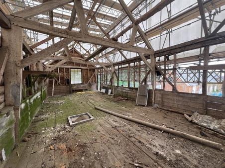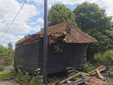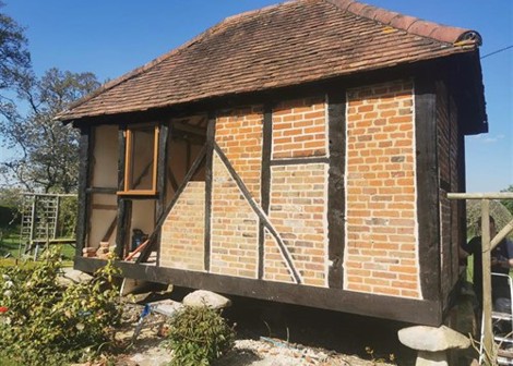 Another listed granary that was in much need of restoration! We have to strip the building back to its basic frame to fully appreciate what work is needed and assess what can be kept and what timbers need to be strengthened by splicing with new hand crafted oak. Once the integrity of the building is restored, we re-dress it with oak cladding, reclaimed roof tiles and, in this case, hand crafted oak mullioned windows, steps and doors - both front and back. Lastly, we restore the dwarf brick wall with original bricks and traditional lime mortar to finish.
