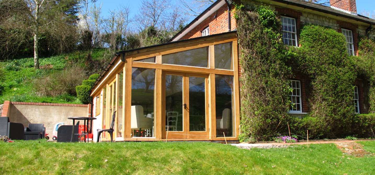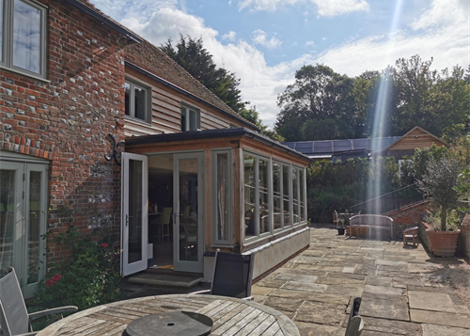Utilising a classic and very popular design to create a functional and flexible extension to this property in Hampshire, we provided the green oak frame for this build.