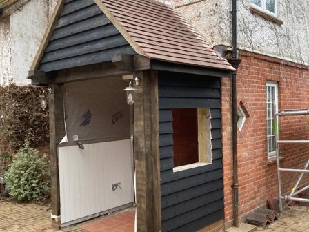 The addition of this hand made overhanging porch has enhanced the appearance of the house and given some much appreciated cover for our clients. A quick visit by our electricians to install an overhead light completed the job.