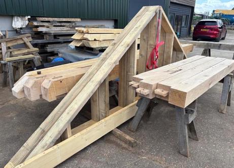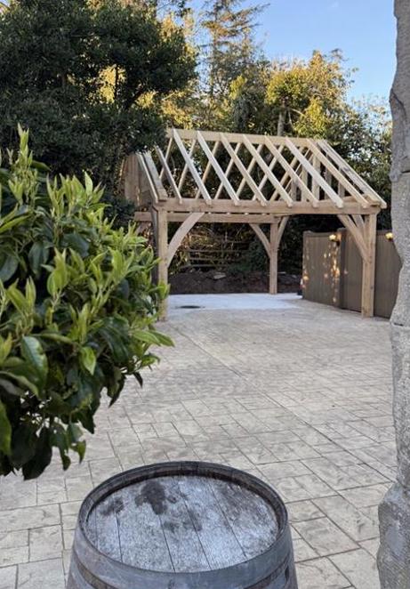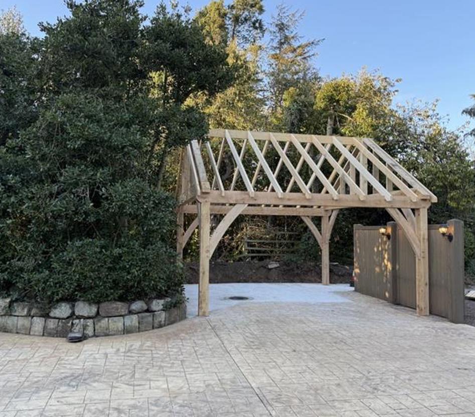 A handcrafted oak frame installation, first manufactured in the workshop and then installed onsite piece by piece. This frame is destined to become a fantastic outdoor kitchen to create a beautiful, durable space for outdoor entertaining.