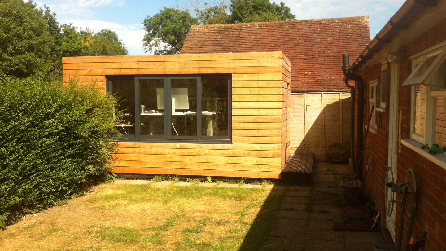 This bespoke timber and oak framed annexe was commissioned to provide a self-contained guest suite with one double bedroom, shower room and kitchen facilities. With dimensions just over 5 x 4 metres, it delivers a lot in a small space.
