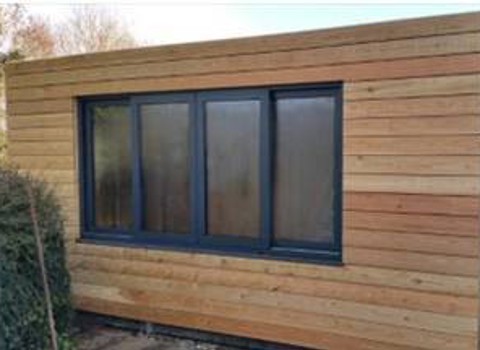A simple box design, clad in profiled pine boards, creates a Scandinavian style cabin for use as a home office, children's playroom or man cave!