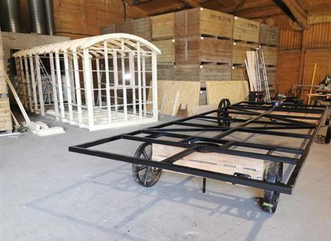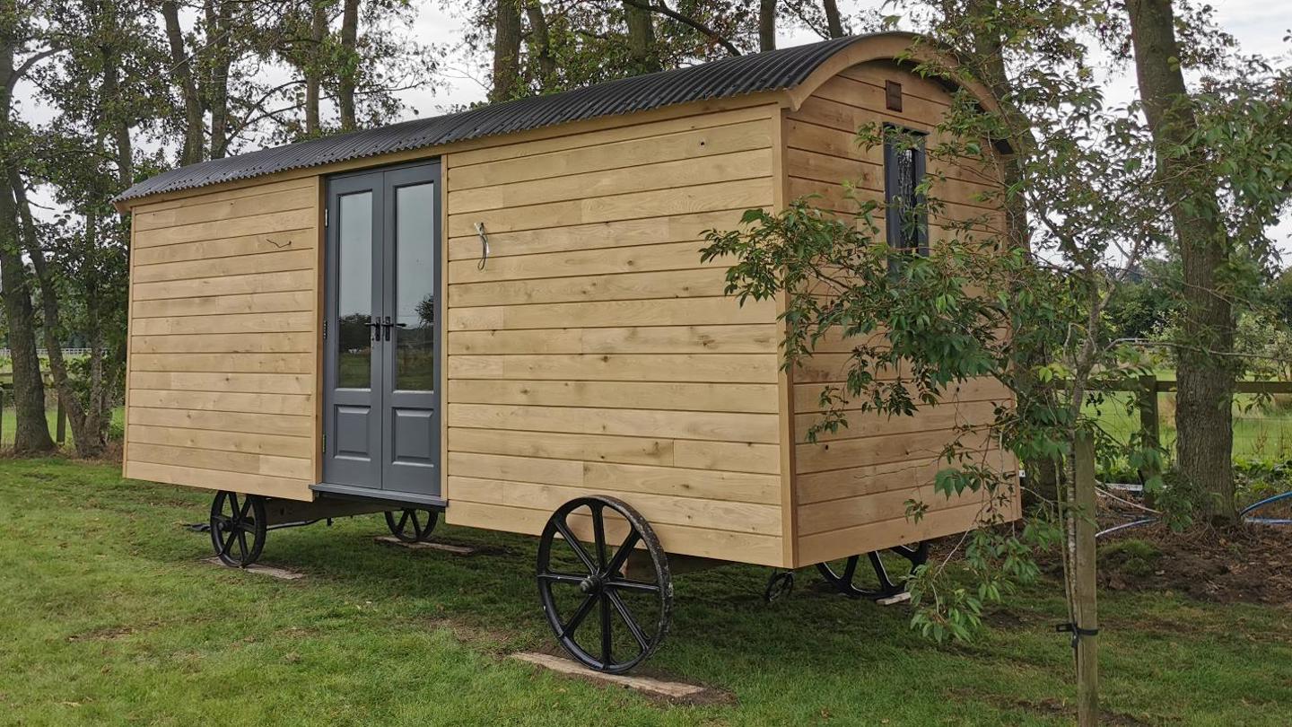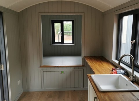 This bespoke and fully insulated timber-framed Shepherd's Hut measures 6 x 2.4m and has been fitted out with a double bed, kitchen and a hot water shower room & WC. A few finishing touches still to go to include fitting the external lights and installing the external stairs, which we make once the hut is in its final position so we get the height just right.