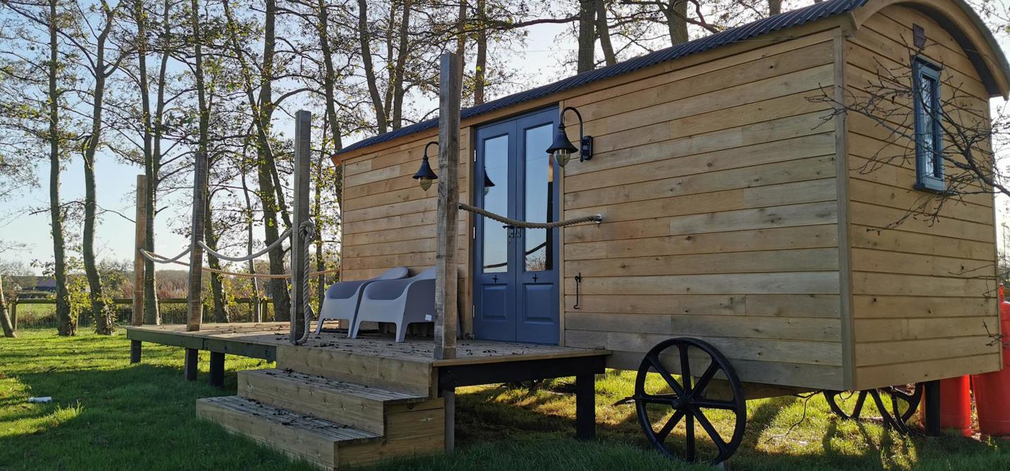Given just a set of rusty and broken wheels, we hand built this fully insulated timber-framed Shepherd's Hut. Measuring 6m x 2.4m it has been fitted out with a double bed, kitchen, a hot water shower room & WC. An outside deck has been added to create an outside entertainment space to finish off this cosy guest accommodation.