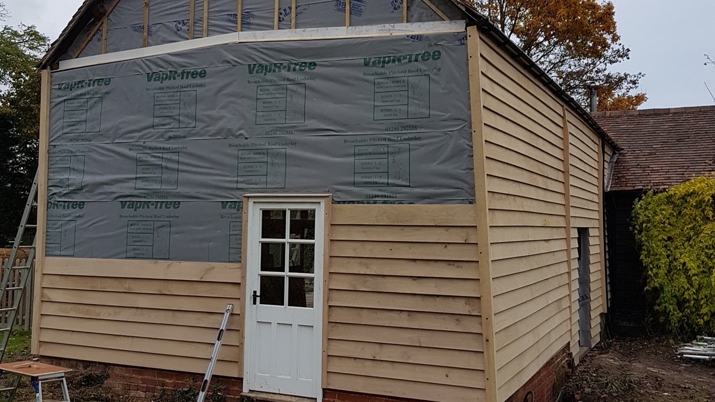 A full barn restoration project to turn a disused and run down building back into a flexible, secure and insulated space. Once all the timbers were treated and repaired as required, the barn was dressed with oak cladding which will eventually fade to a subtle silver/grey colour.