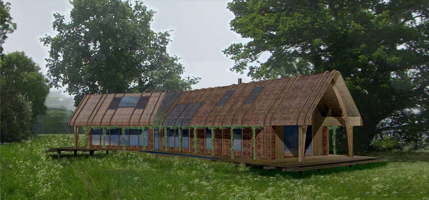 Architectural 3D drawings illustrate to our client how their unique and ground-breaking cruck-framed eco-house would look in situ.