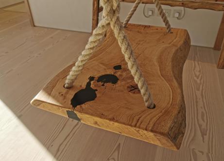 We've made quite a few swings as special birthday or event gifts. Most of our clients have wanted to work with the unique shape of their selected piece of wood for a truly custom piece. Single, double width, jute or coloured rope, resin filled or rustic - the options are endless.