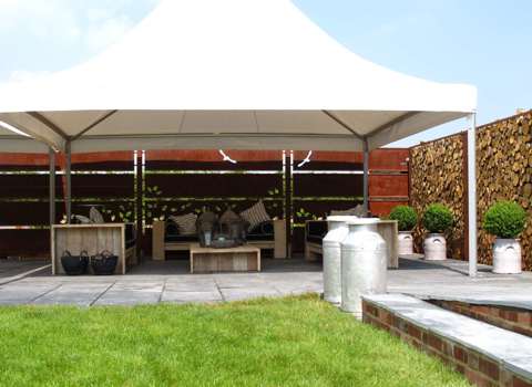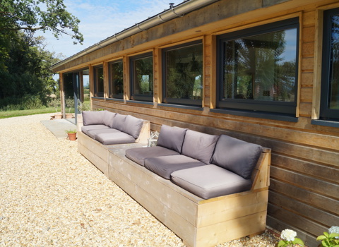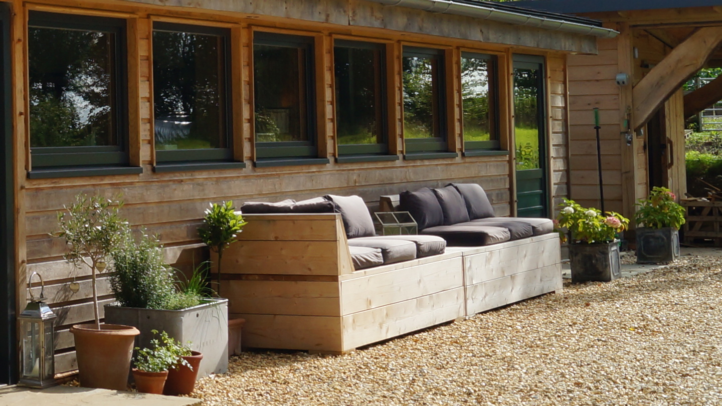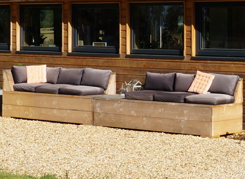 Custom built all-weather furniture using scaffold boards. Flexible, practical, comfortable and recycling at its best.