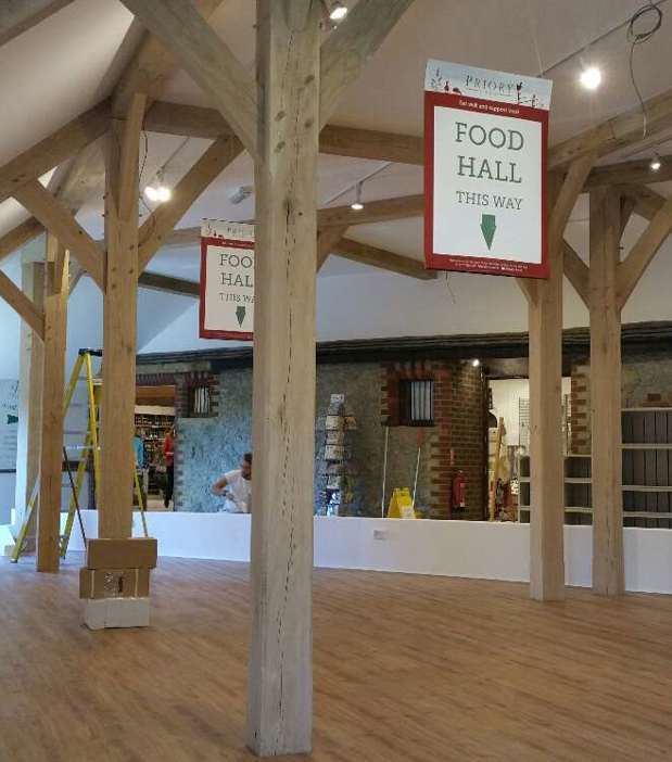 Invited back to this Surrey Farm Shop, we designed and built an oak frame to fit a difficult space at the rear of the premises. The beauty of oak framing is that you can custom build to fit any area – however awkward! Once completed, the new extension provided a large and flexible space for the shop to expand into. prioryfarm.co.uk