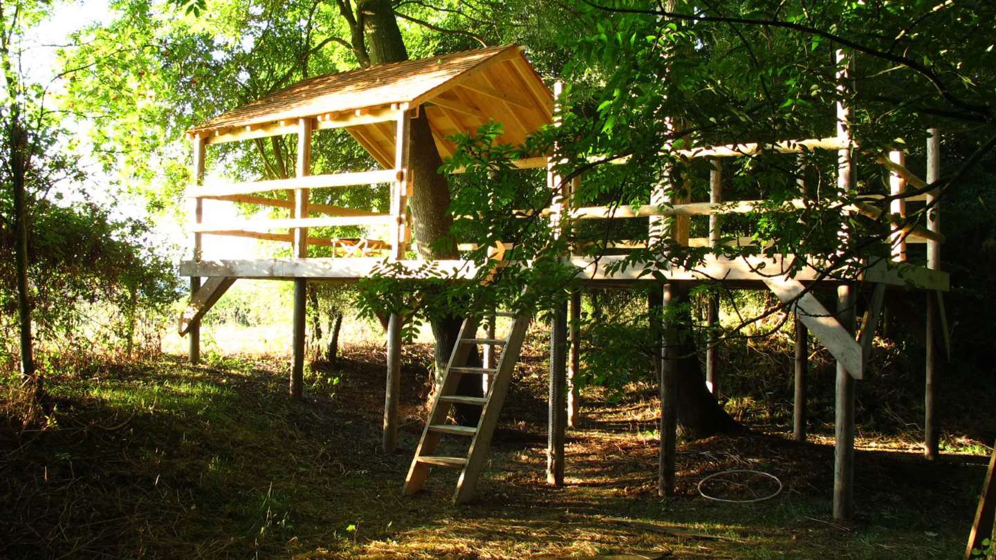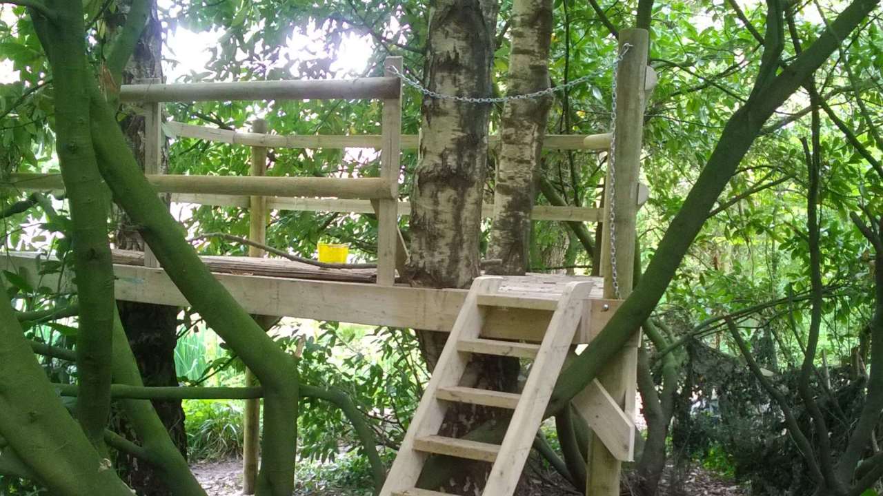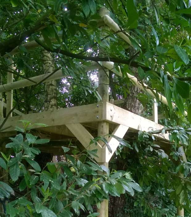 A platform built around existing silver birch trees provides a robust play area or gin & tonic terrace.
