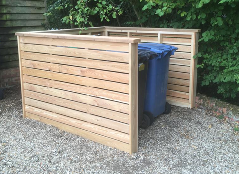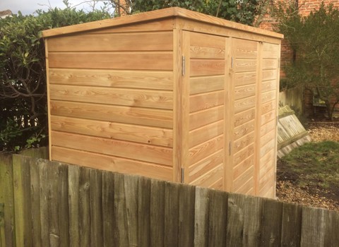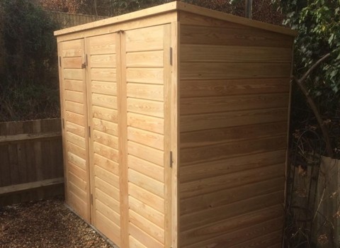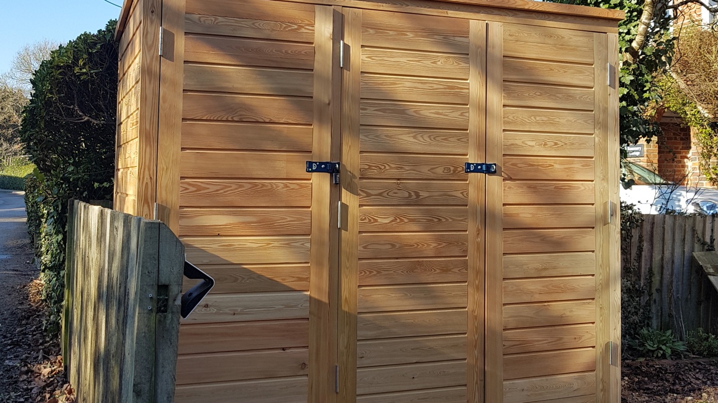 Our clients asked us to build them a bike and bin shed combined, with secure storage for the bikes and easy access for their wheelie bins. Using weatherproof larch cladding, the finished structure fits neatly in their small front garden and fulfils the brief perfectly.