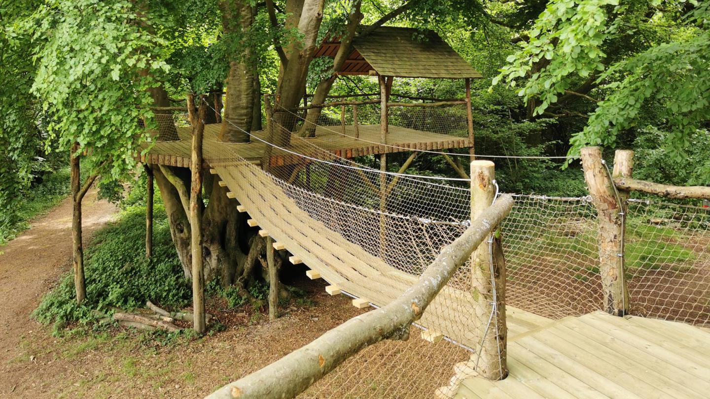 Building a pair of linked platforms and treehouse was one of those really fun projects that comes along from time to time. Built high off the ground so vehicles can pass underneath the rope swing bridge linking the two, we also included a zip wire ride, cargo nets for climbing and multiple ladders and hatches for maximum entertainment. Where we could, we felled and prepped timber from the surrounding estate woodland so that the finished structure blended in with its surroundings as much as possible - plus it was great to get back to old school woodworking skills!