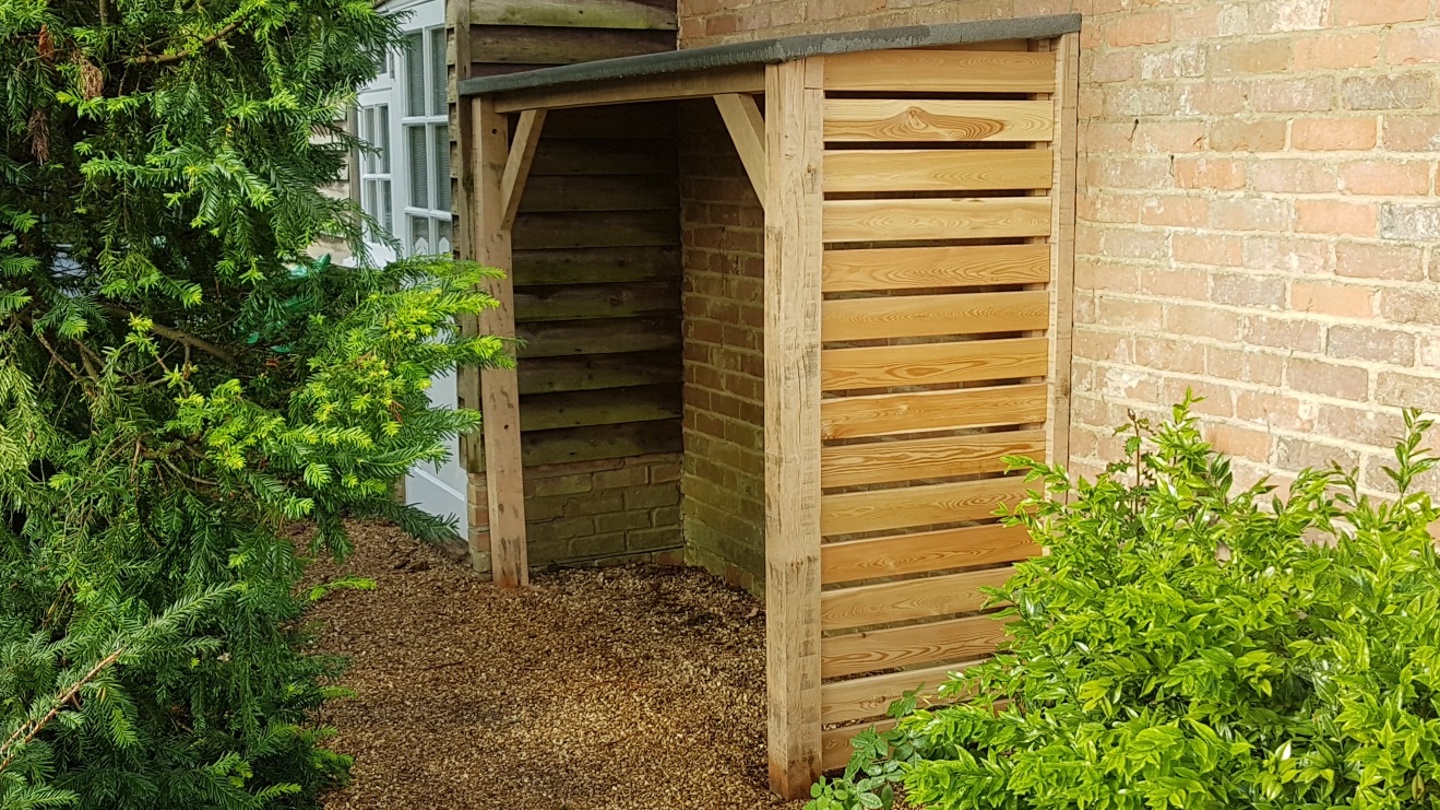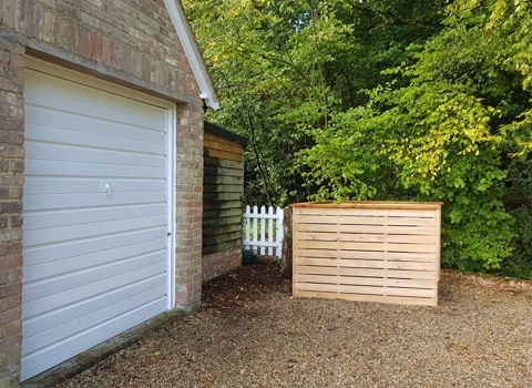 Two common problems we're asked to solve: how to make better use of dead space and how to make something ugly look more appealing. In this case, our clients wanted to hide their assortment of ugly wheelie bins and create a dry log store in one combined structure. We reviewed all the surrounding space available and instead created a bespoke log store tucked into the side of the garage and a separate, easy access larch clad bin store at the top of the drive. Our clients were thrilled.