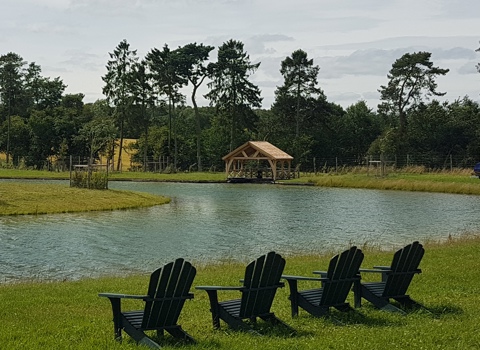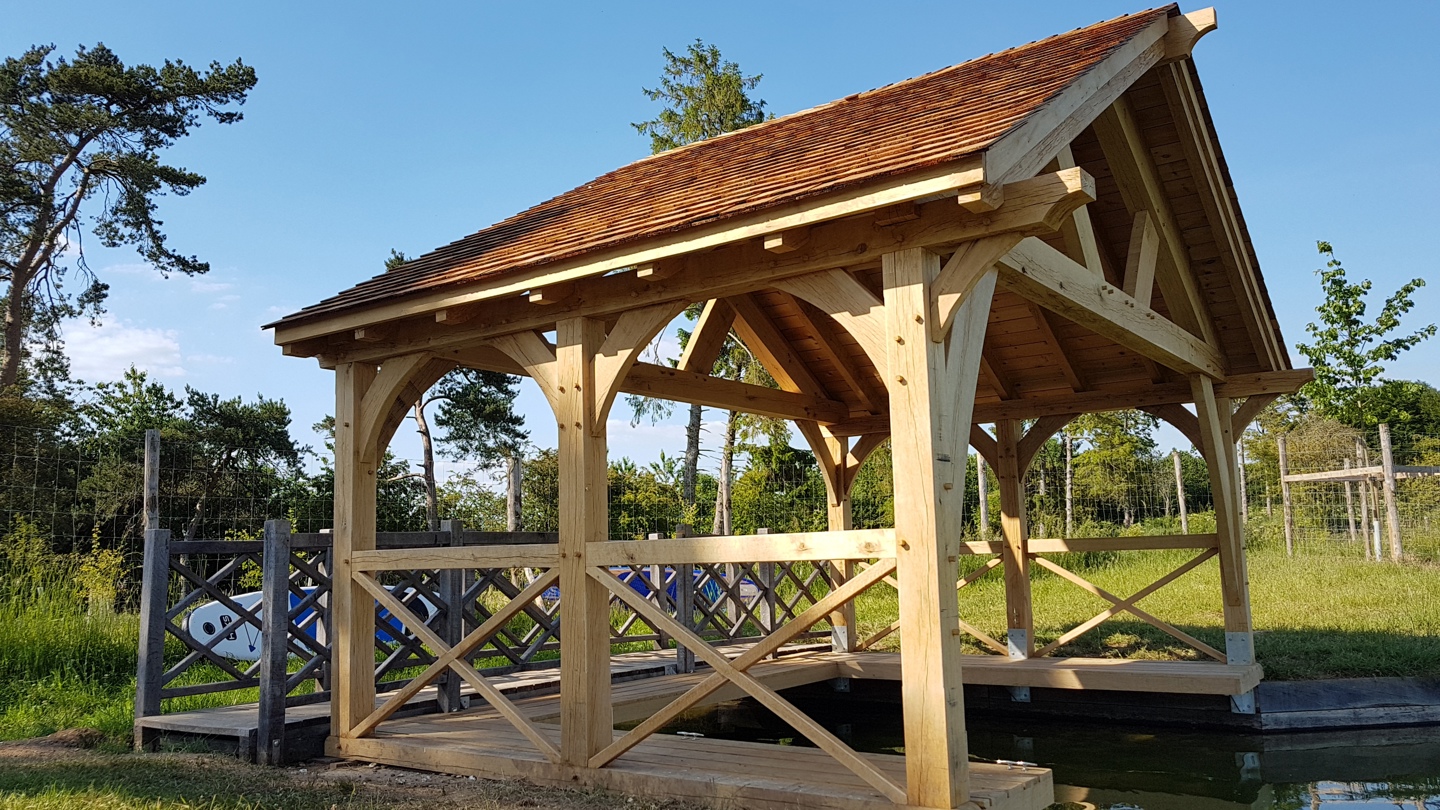 Building this lakeside boathouse during the hot sunny days in June was an absolute delight for obvious reasons! Designed specifically to fit our client's boat (not shown in situ), there is plenty of space to also store kayaks and paddle boards in the rafters. Accessed via a wooden bridge to the rear, it has enhanced its setting beautifully.