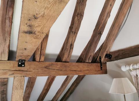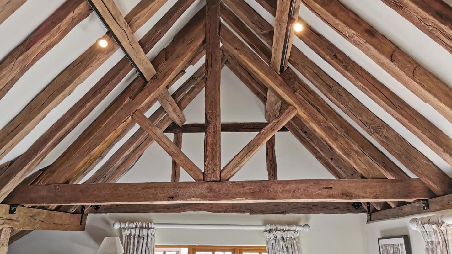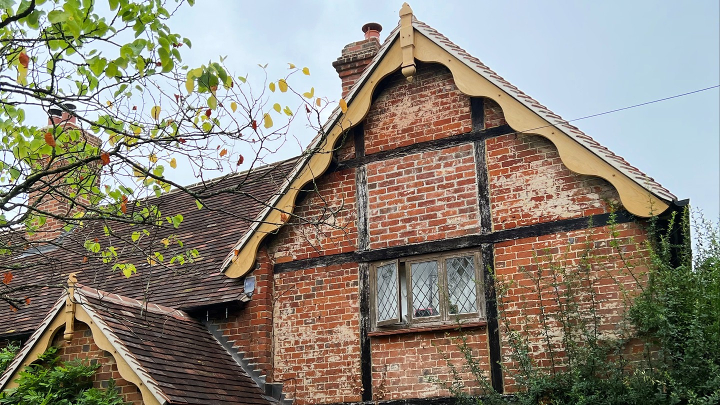 New oak barge boards and decorative finials grace the three gables of this Grade II listed house. The hand carved curvy shape replicates what was there originally, but will be left untreated to weather down naturally.