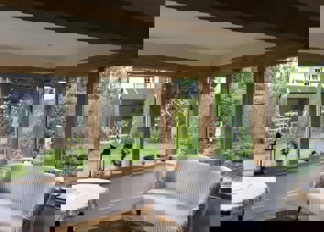 A traditional oak framed extension enhances the existing architecture of this period property in Odiham and creates a stunning new garden room/conservatory. Five Oak Projects provided the green oak frame for this build.