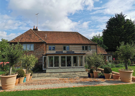 Utilising a classic and very popular design to create a functional and flexible extension to this property in Hampshire, we provided the green oak frame for this build.