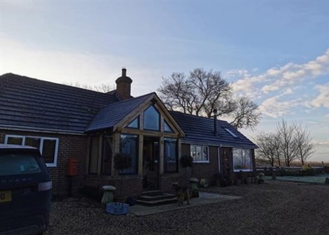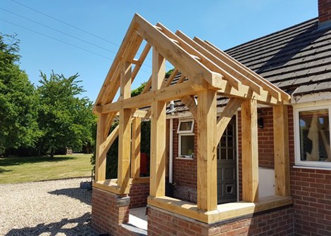 This large oak framed porch extension gives this bungalow valuable additional usable space. A cost effective way of increasing the footprint of a property, as well as providing another layer of front door security, kerb appeal and, of course, added value. We popped back on a freezing cold morning to see how it was weathering in.