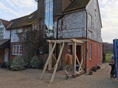 The addition of this hand made overhanging porch has enhanced the appearance of the house and given some much appreciated cover for our clients. A quick visit by our electricians to install an overhead light completed the job.