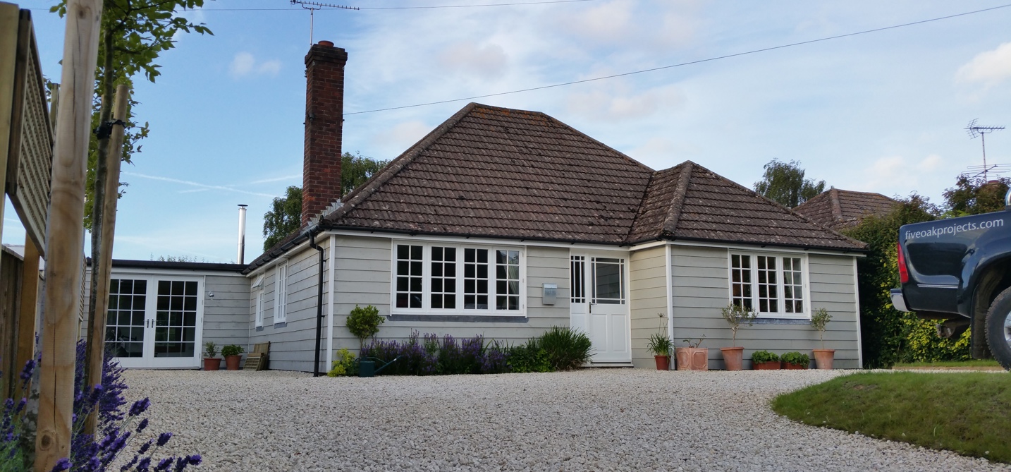Just a few simple changes to this bungalow has transformed it. New windows, doors and painted cladding brings a tired building back to life, aided by a little landscaping.